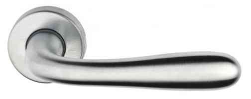 MANIGLIA PER PORTE BLINDATE Mod. GOCCIA in zama, sottoborchia in nylon. Rosetta tonda a pressione. Fermo con grano. Mano Dx Cromo satinata