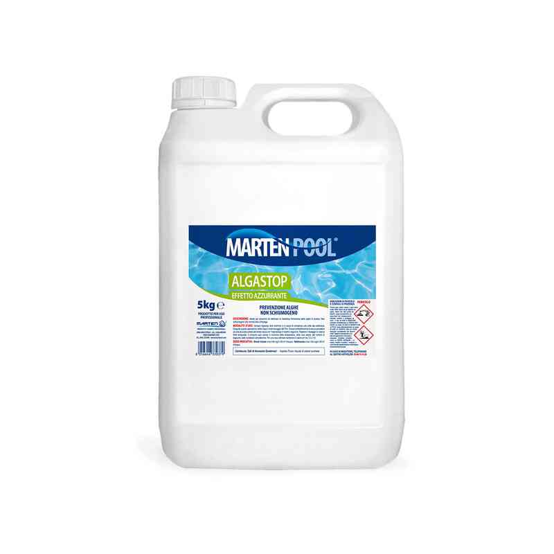 liquido ideale per prevenire ed eliminare la fastidiosa formazione delle alghe in piscina. Risolve i problemi causati dalle alghe, come la torbidit, gli odori sgradevoli, lintasamento dei filtri. Non schiumogeno alle normali dosi dimpiego. pH 8,5. Dosaggio Trattamento iniziale 4,7 l/100 m3 dacqua. Mantenimento 2,5 l/100 m3 dacqua. Colore turchese. Confezione da 5 kg