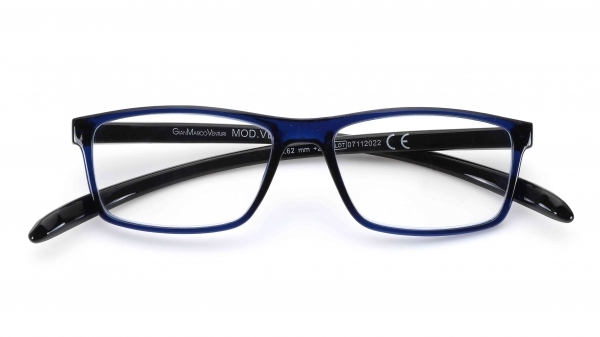 Mod. VERONA montatura in leggero materiale organico iniettato, lenti asferiche ultrasottili ed infrangibili. Astine flessibili. Diottrie da +3,5Colore blu