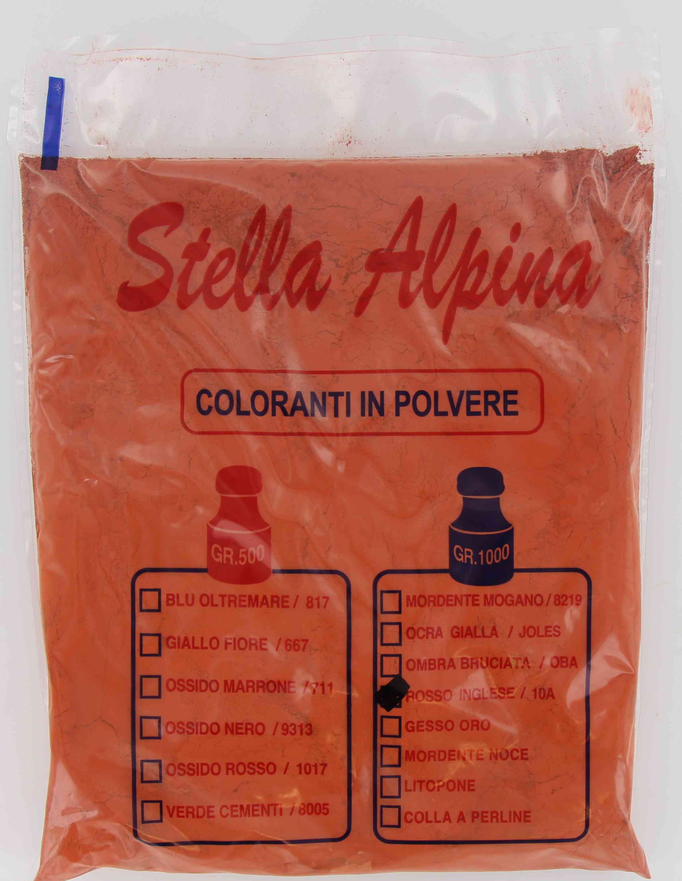 a base di argilla e ossido di ferro, per affreschi, restauri e idropitture. Per la ristrutturazione di edifici nei centri storici. Confezione da 1 kg Colore rossetto inglese