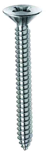 in acciaio cementato e zincato. Taglio a croce. Testa svasata piana. Diametro 2.9 mm Lunghezza 19 mm