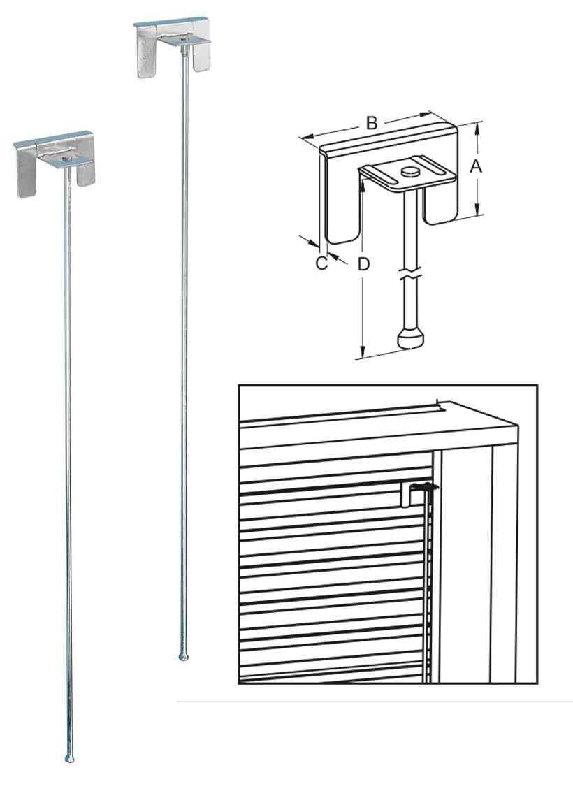 in acciaio zincato. Con asta saldata 39 x 480 mm. Per tapparelle in plastica