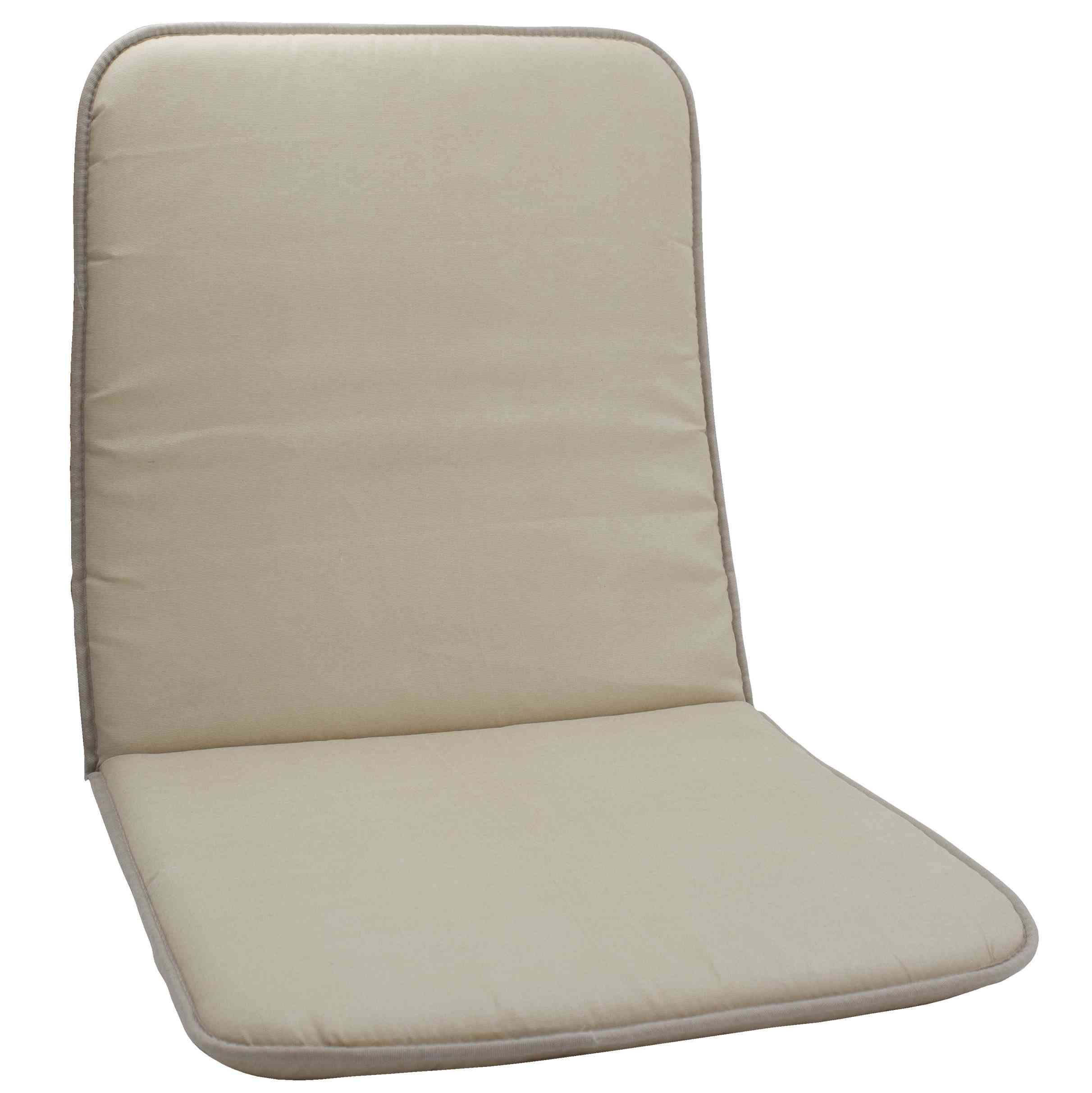 60% poliestere 40% cotone. Imbottitura in poliuretano espanso. Spessore 2 cm Dimensioni cm 80 (38+42)x42 Colore beige