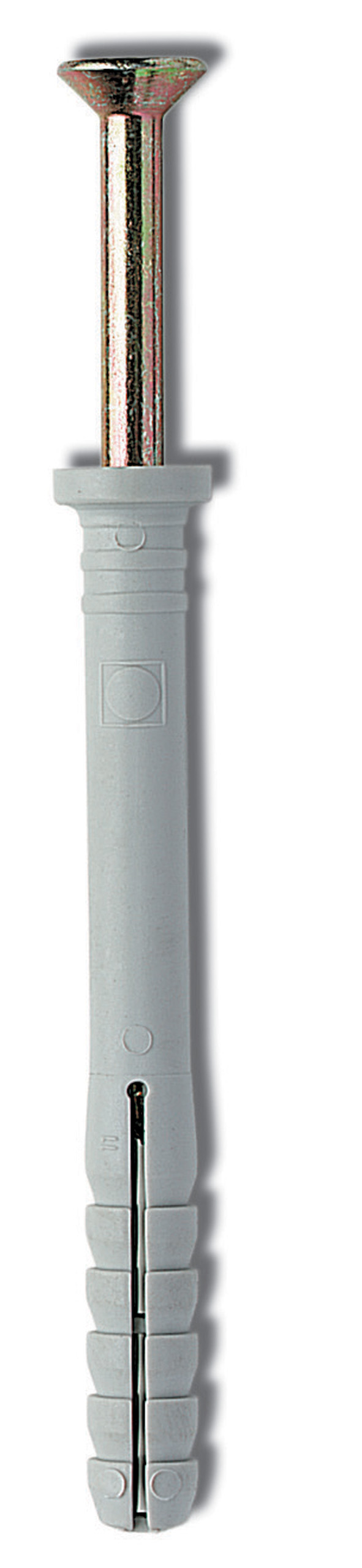 in poliammide 6. Completi di vite a chiodo premontata, impronta PZ Applicazione rapida con pochi colpi di martello. Collarino piatto. Diametro 8 mm Lunghezza 75 mm Confezione da 50 pezzi