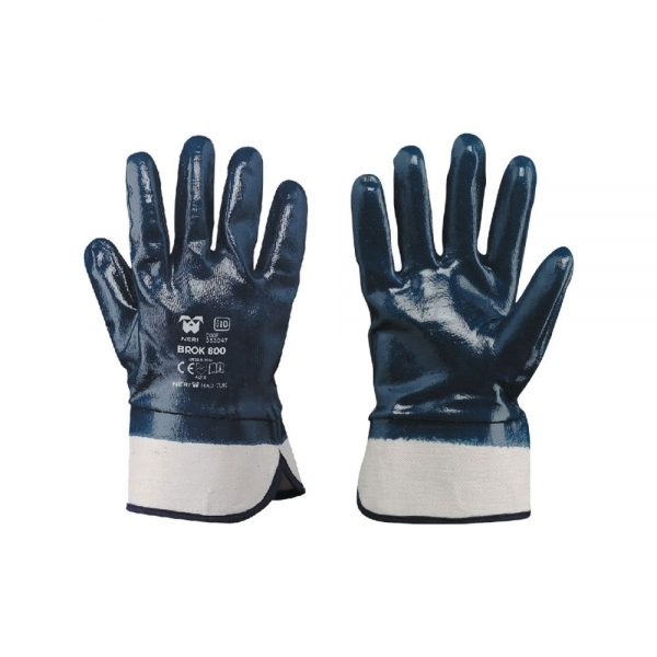 Interamente ricoperto Ottima resistenza all'abrasione, idrocarburi e derivati, oli e grassi Manichetta di sicurezza in tela di cotone Colore: blu, bianco taglia 10