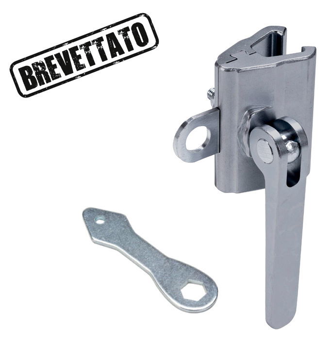 in nylon con parti in acciaio inox, corredato di chiave di regolazione
