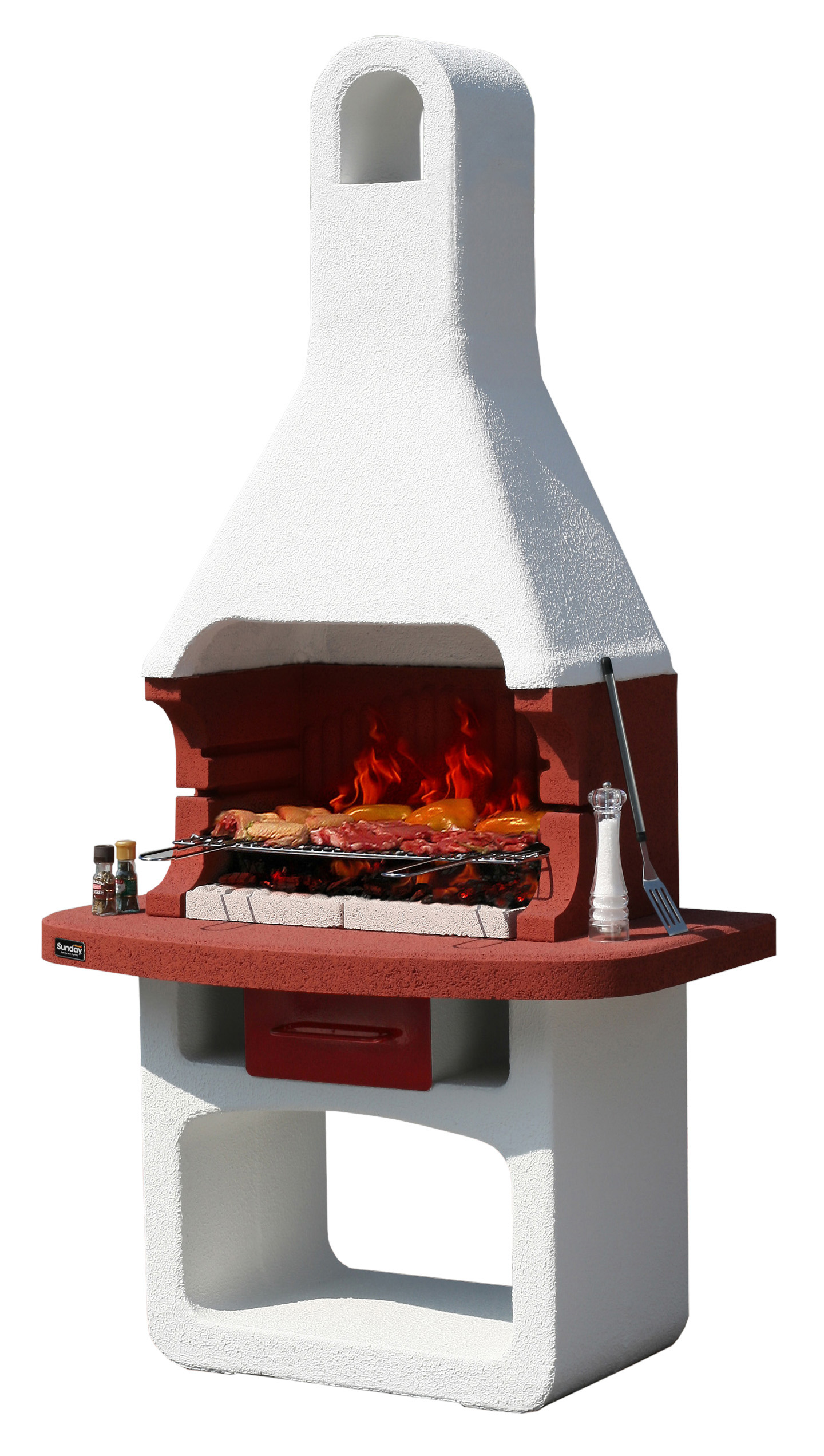 in cemento e refrattari inerti,con cappa. Griglia cromata.Dotato di cassettoraccoglicenere.Piano di cottura cm 67x40Dimensioni montatocm 114x71x230hPeso 395 kgFornito smontato e nontinteggiato.Funziona a carbonella