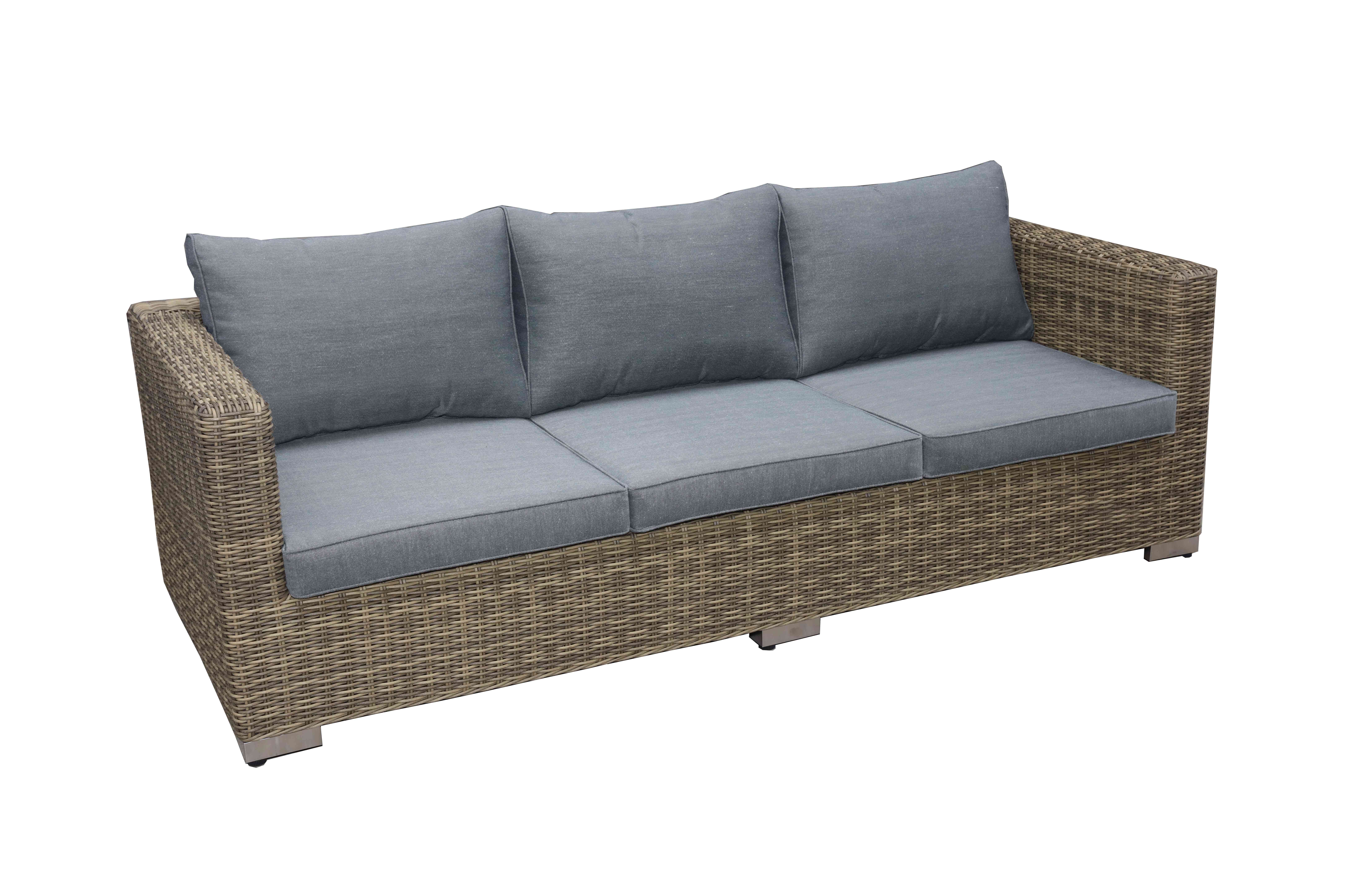 in polirattan, telaio in alluminio. Completo di cuscini spessore 10 cmDimensioni cm 213x87x67hImballo in cartone unico cm 215x89x69 - Peso 40 kg