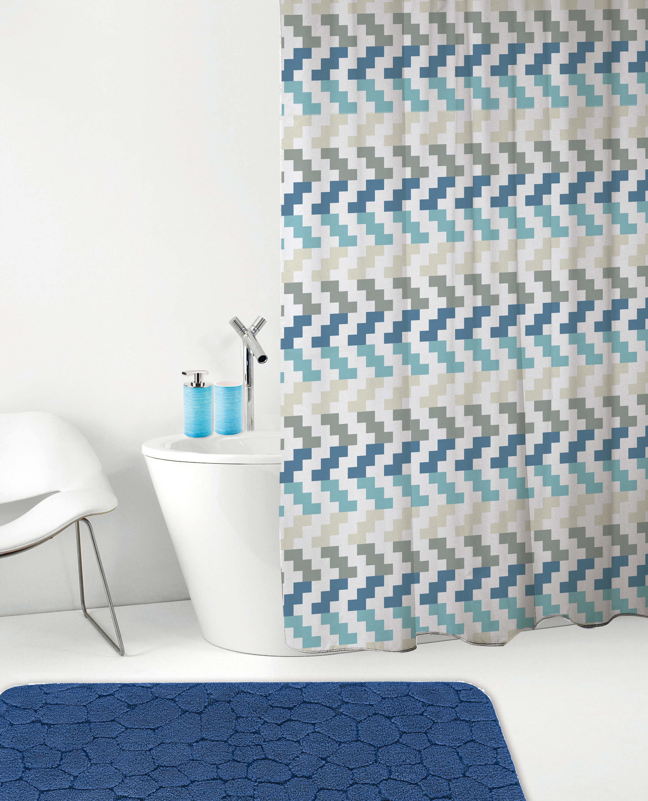 Disegno PIXEL 121 in poliestere. Completa di anelli e pesi nella cimosa inferiore. Dimensioni cm 120x200
