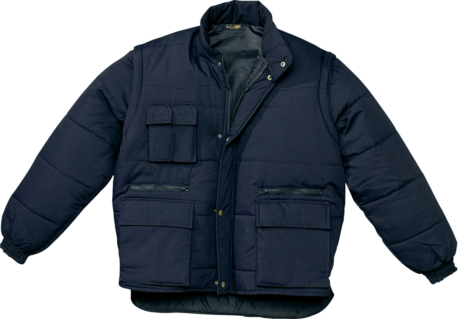 Mod. SAVOIA 65% poliestere, 35% cotone. Trapuntato, maniche staccabili, imbottitura in poliestere. Chiusura con cerniera e bottoni. Multitasche CE Ia categoria Taglia XXL Colore blu
