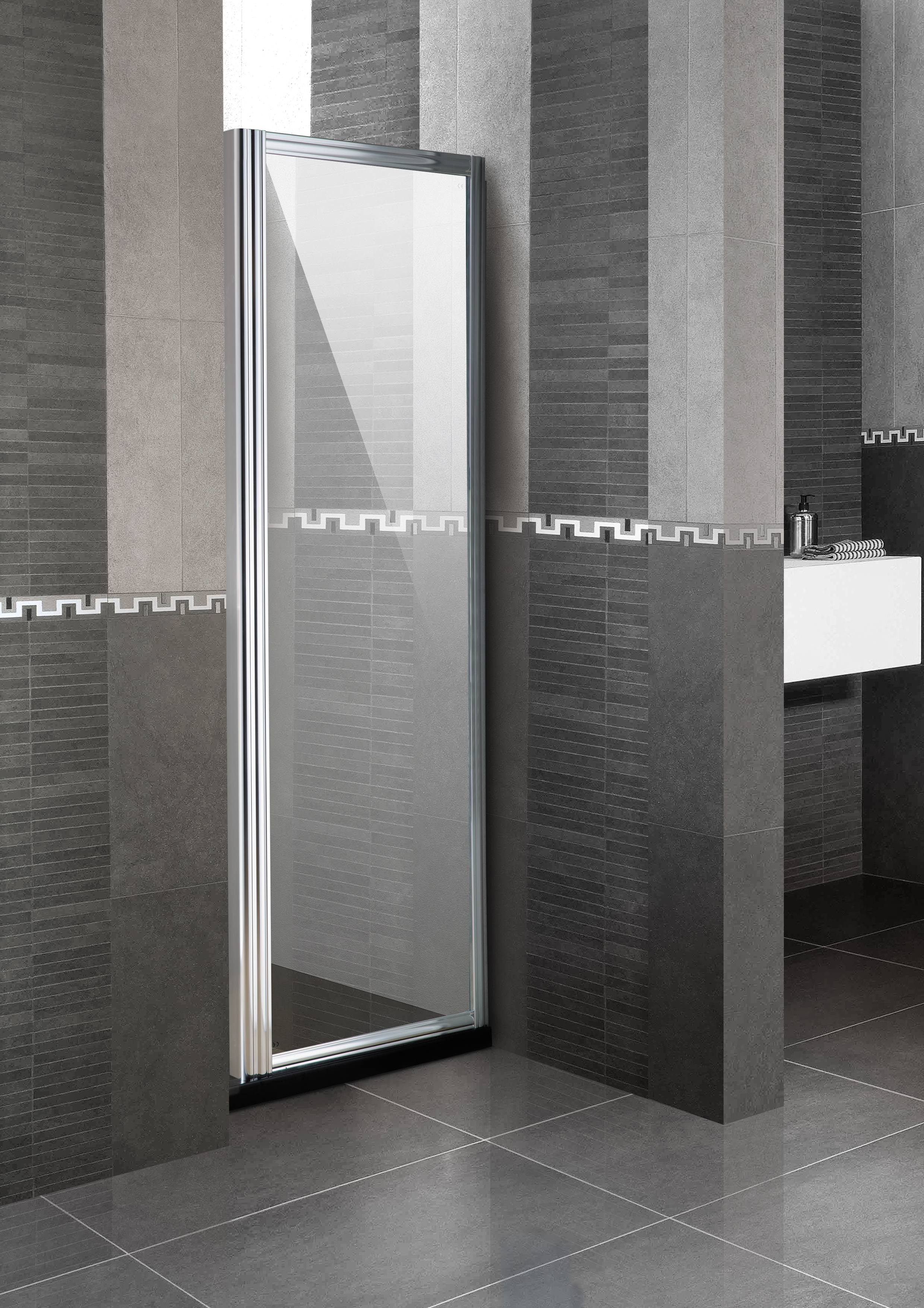 parete fissa , profili in alluminio cromato, pareti in cristallo da 6 mm Altezza 185 cm Estensibilità cm 84÷90