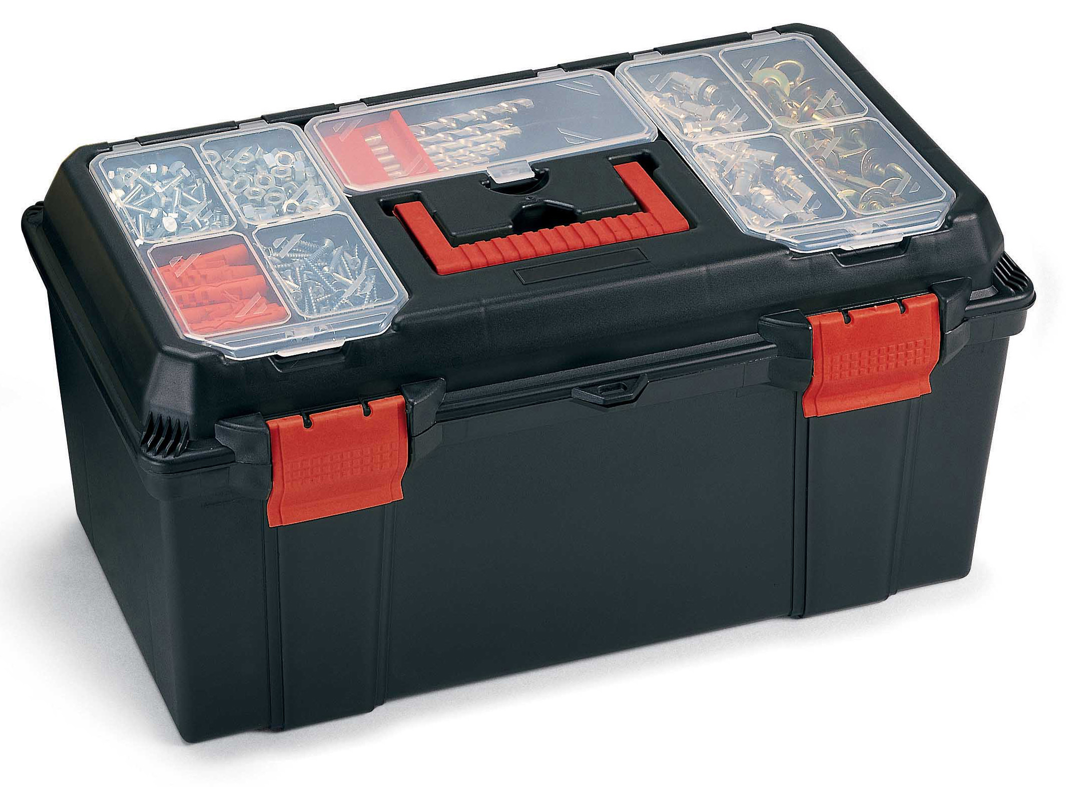 Mod. TOOL CASE 22 in resina termoplastica, maniglia a scomparsa. Vassoio interno estraibile. Scomparti portaminuterie sul coperchio. Dimensioni mm 550x310x260h